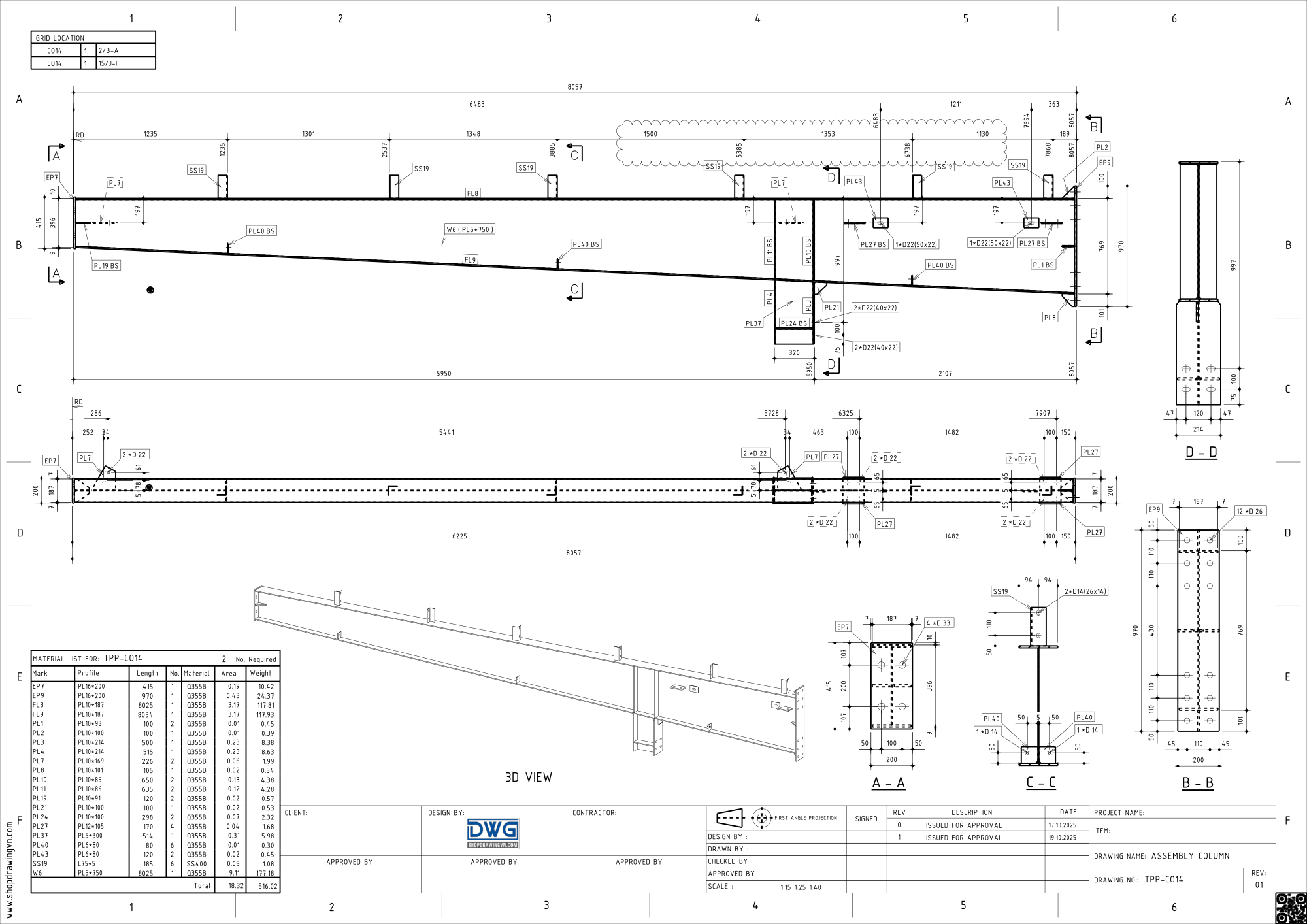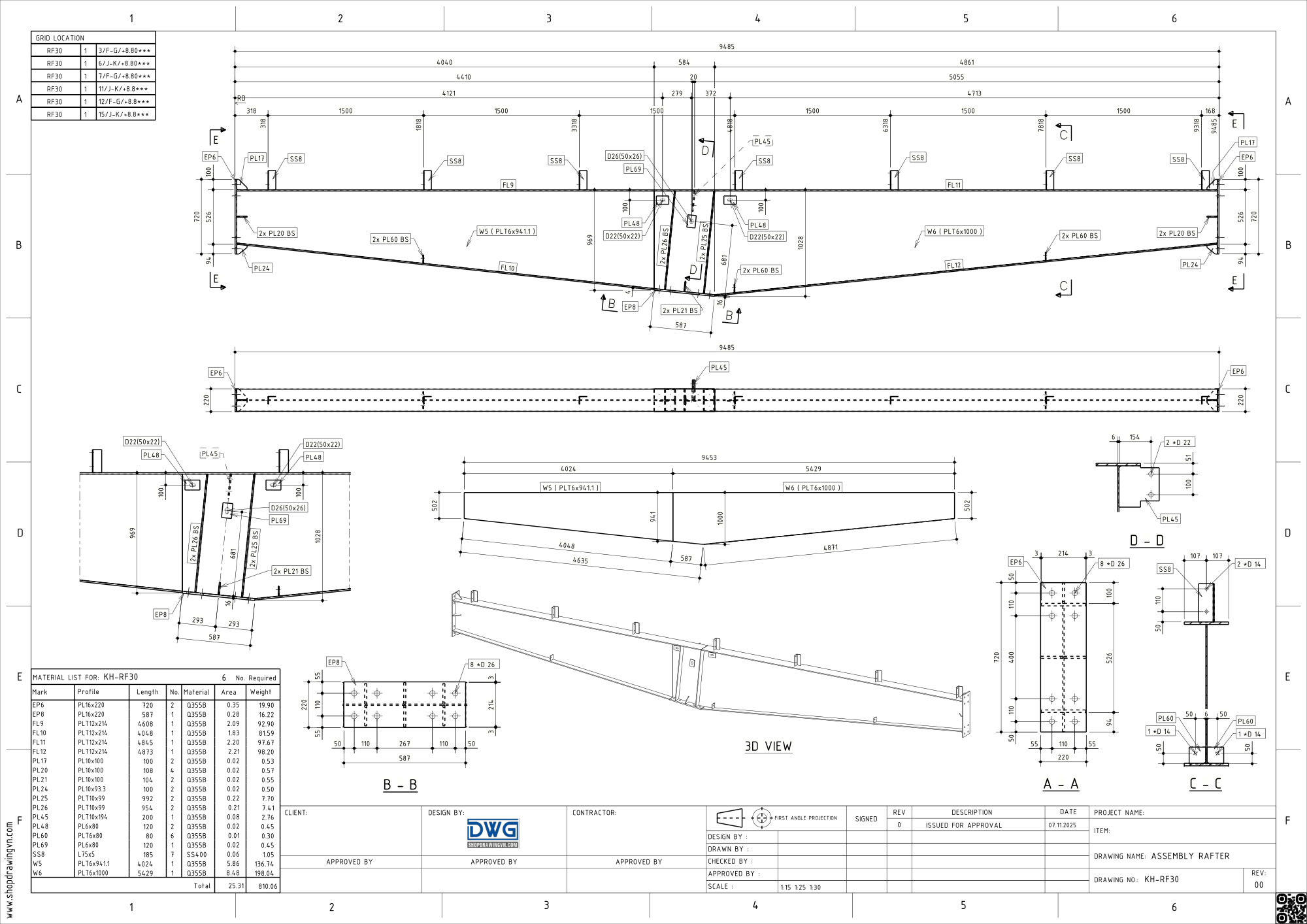✔️B11: Tạo bản vẽ Assembly (bản vẽ gia công cấu kiện).